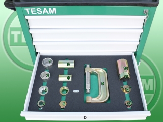 Serwisowa prasa - ściągacz hydrauliczny i ręczny do wyprasowania i wprasowania sworzni wahacza bez demontażu wahacza z samochodu.